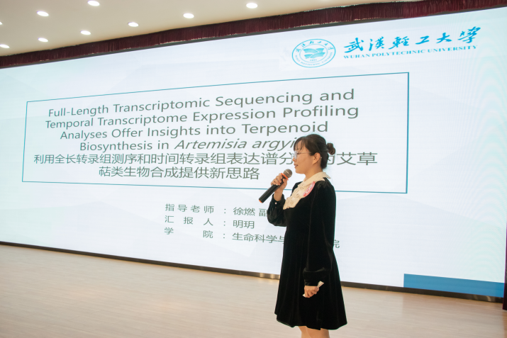 在报告会中,明玥同学汇报了研究——《利用全长转录组测序和时间转录组表达谱分析为艾草萜类生物合成提供新思路》,通过GC—MS的方法对艾草的代谢产物进行检测,以及根据艾草转录组和代谢组学关联分析,筛选出关键基因,判断这些基因在挥发油合成代谢途径中的调控功能。该研究为今后通过生物合成相关目标化合物或培育优质艾草品种奠定了一定的科学基础。