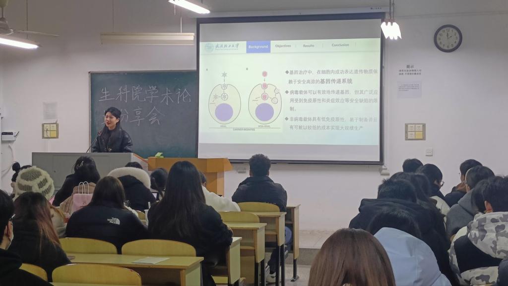 分享会上,蒋玉菡、王梦影和陈洪彪三位师兄师姐分别就自己的研究内容和成果做了精彩的报告,涵盖了生物科学领域的多个研究方向。他们通过演示讲解和生动的实验展示,向大家介绍了各自的研究进展和成果。结合自身实践,阐释了“发表一篇好的论文,又需要反复的试验,不断的锤炼”的宝贵感受。