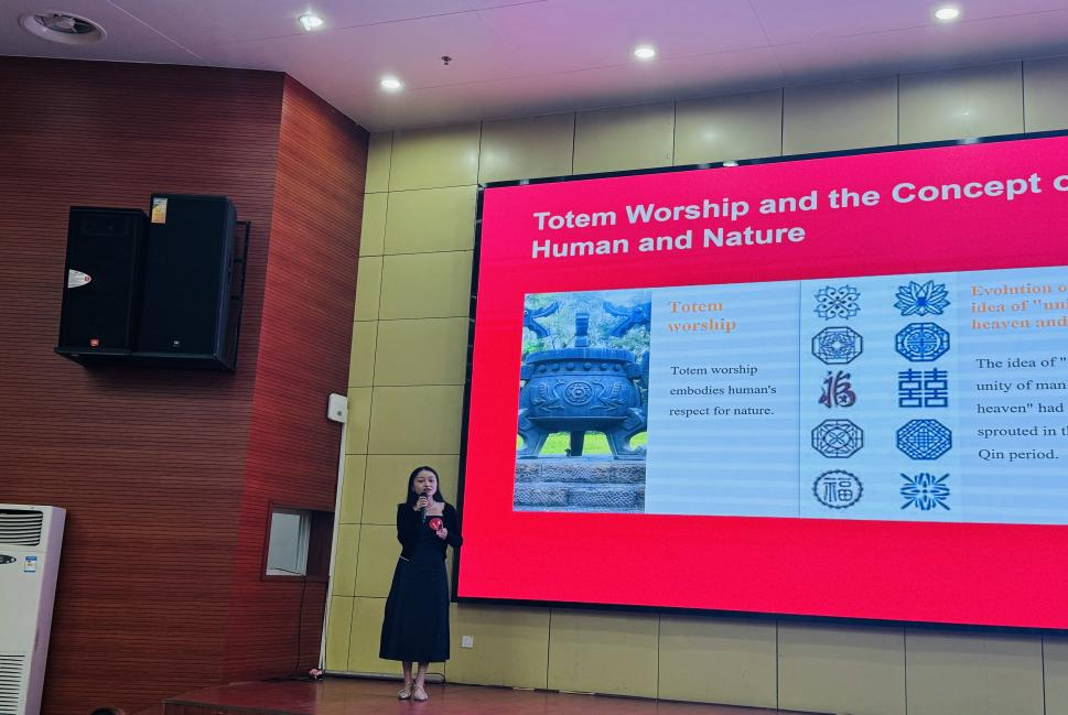 在主持人致以开场白并简单说明了比赛规则及评分标准后,比赛正式开始。现场气氛紧张而热烈,选手们围绕给定主题展开激烈角逐。taptap点点易欣仪同学的演讲题目为《Totem Worship and the Concept of Human and Nature》,凭借扎实的英语口语基础、流利的表达能力和敏捷的思维,赢得了评委和观众的一致好评。她在比赛中充分展示了taptap点点研究生的风采、实力和优秀素质,为学院争得了荣誉。