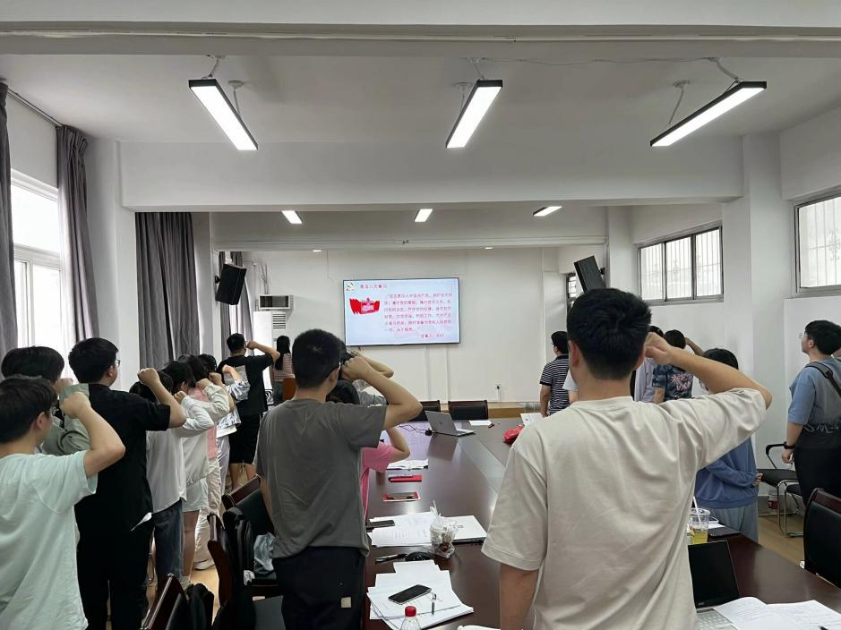活动伊始,主持人向到场的老师和同学们表示热烈欢迎。首先进行的是重温入党誓词环节,由学院党委副书记罗霄领誓,全体党员肃立,重温那份庄严的承诺,表达了对党忠诚的决心和信念。
