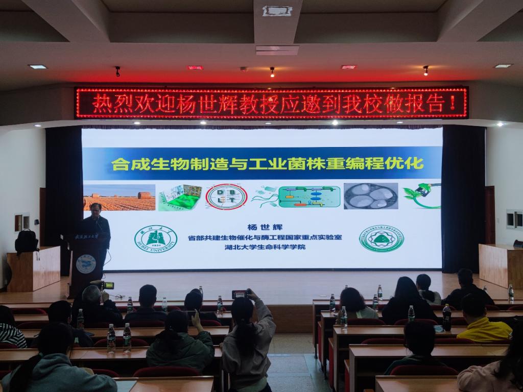 此次讲座邀请到的报告人是湖北大学的杨世辉教授。杨教授是湖北省“楚天学者”特聘教授,“省部共建生物催化与酶工程国家重点实验室”副主任,湖北省合成生物学学会副理事长兼秘书长,并荣获湖北省“百人计划”创新人才称号。杨教授曾先后任职美国能源部橡树岭国家实验室副研究员(Research Associate,2007-2011),美国国家可再生能源实验室研究员(Staff Scientist,2011-2016),2016年底加入湖北大学生命科学学院,主要从事微生物代谢工程、合成生物学以及生物能源与绿色生物制造等方面研究;作为项目负责人主持包括科技部合成生物学重点研发计划、自然科学基金面上与联合项目等多项国家及省部级项目;先后在Nature Biotechnology、PNAS、Nucleic Acids Research、Trends in Biotechnology、Metabolic Engineering等期刊发表论文100多篇,引用4100余次,H-index 37。获美国授权专利6项、中国专利授权13项。担任BiodesignResearch共同执行主编,Frontiers in Bioengineering and Biotechnology、Frontiers in Energy Research及编辑及《合成生物学》与《生物工程学报》编委。