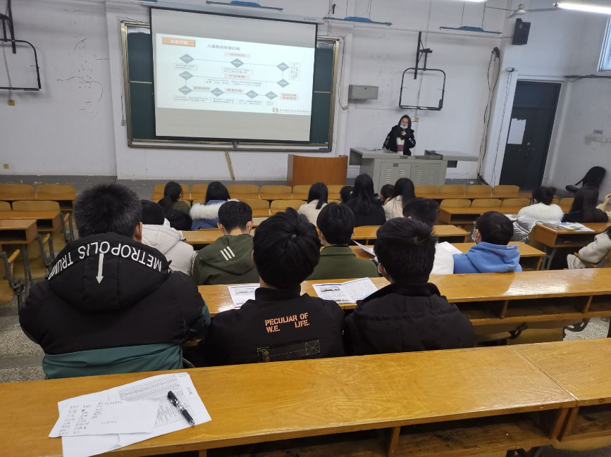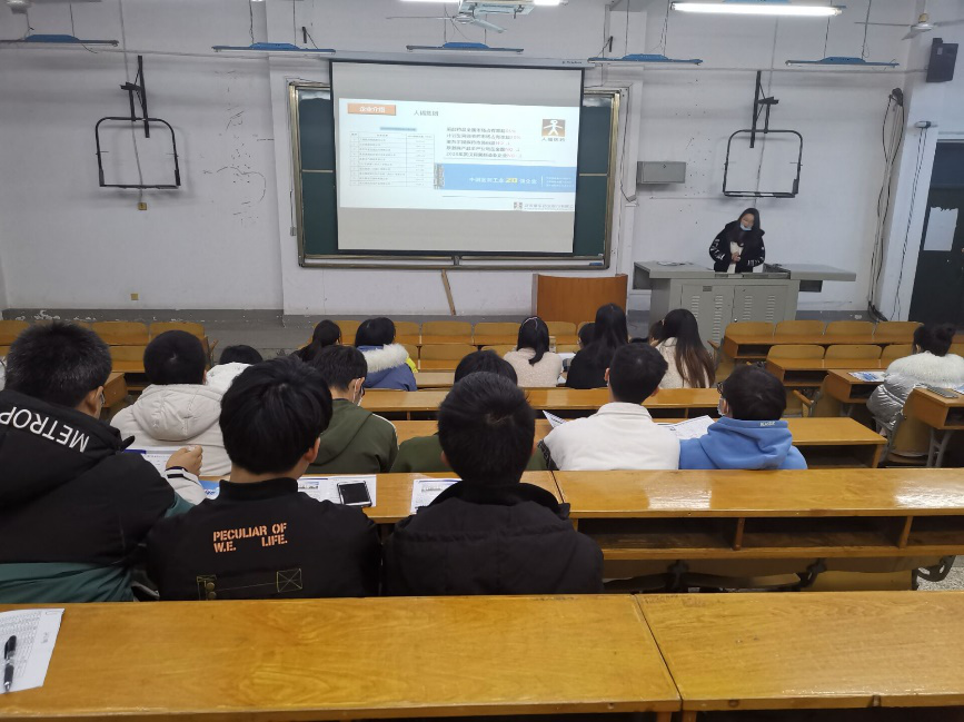 紧接着樊女士通过PPT介绍公司,使得同学们进一步了解了武汉康乐药业股份有限公司的发展历程、主要产品、招聘计划等多个方面的信息。然后提问互动环节,现场同学就有关公司薪资待遇、发展通道、工作时间等进行提问,樊女士一一给与耐心解答。