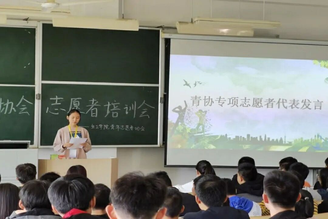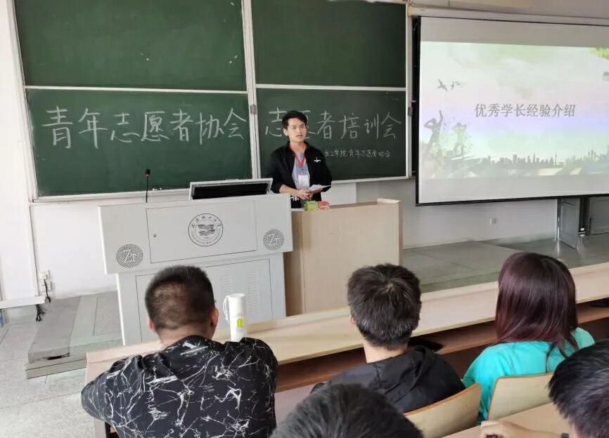 在经过简单的青协人员自我介绍后,培训会主持人介绍了青协曾获得的荣誉。其中“花朵计划”曾在《武汉晚报》报道,参与的志愿者们被评为校优秀志愿者团队。随后进行了青协专项志愿者代表发言,提到希望能在志愿活动中收获友谊,温暖和爱。在优秀学长经验介绍部分,生工学院分团委学生会分管主席彭红星学长分享了他的经历,他希望志愿者们能牺牲课余时间参加志愿活动,能保持志愿精神,保持真心和热心。他还给新志愿者们讲述了自己在大一参加“花朵计划”的志愿经历,告诫新志愿者们要用心体会志愿活动,热心帮助他人。最后全体志愿者们进行了宣誓,庄重的誓言体现了他们对加入青年志愿者协会的坚定。