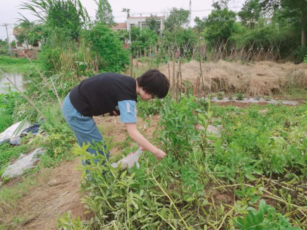 生物科学类1803团支部成员正在采摘青菜,打算为爸爸妈妈做一顿饭。