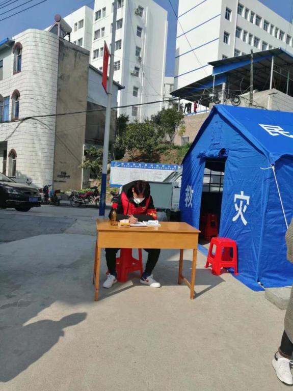 生科1801团支部成员在劳动节期间,参加抗疫志愿活动,为社区出入人员进行体温登记。