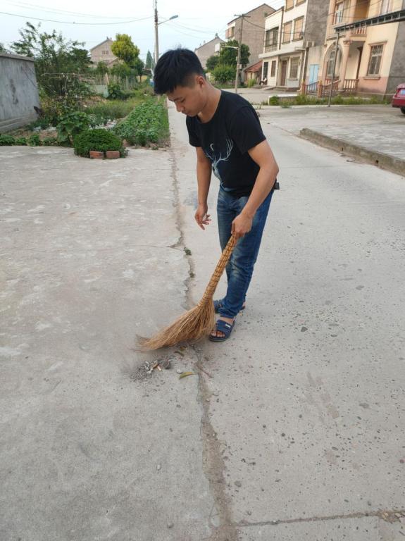 生物制药1901团支部成员正把家门口的这一条小道进行清扫。