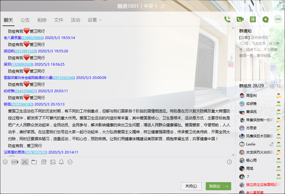 为落实全院学生认真学习习近平总书记关于劳动精神、爱国卫生运动的讲话精神,按照居家所在地和学校疫情防控工作要求,主动参与爱国卫生运动,弘扬劳动精神。生物与制药工程学院全体团支部特开展此次“五.一”爱国卫生运动活动,鼓励全院学生居家学习的同时多多参与劳动。