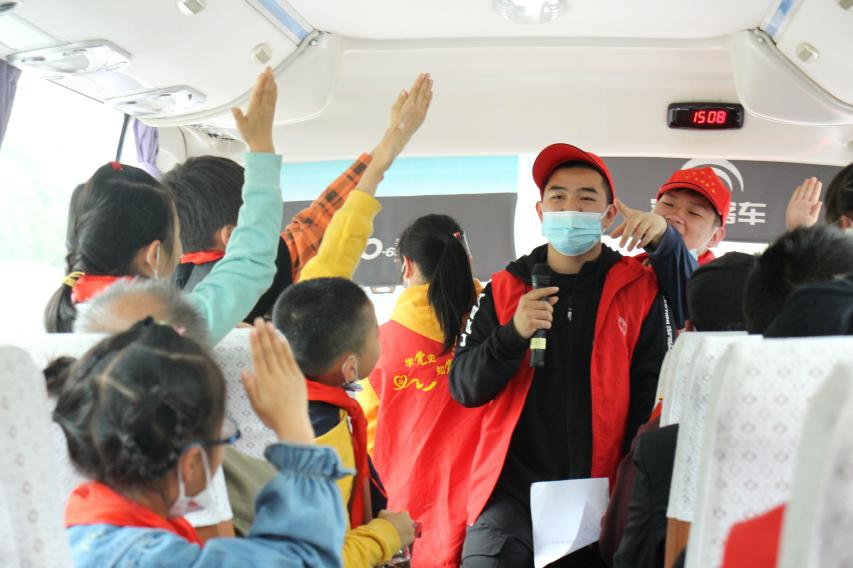 途中,志愿者们组织小朋友和家长们进行了趣味谜语抢答游戏,谜面一出,大家争先抢答,充分调动了家长和小朋友们的活动积极性,车上笑声不断,抢答对了的小朋友还获得了taptap青协志愿者们准备的文具用品等小礼品。