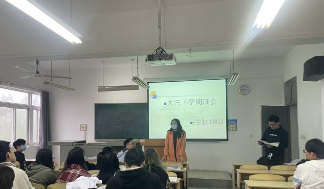 4月7日下午四点,taptap点点生物技术1802班在辅导员邹威老师和班主任田宇老师的主持下,召开了新学期的班会。班会内容主要是探讨同学们大三下学期及大四学年的学习规划与未来发展。