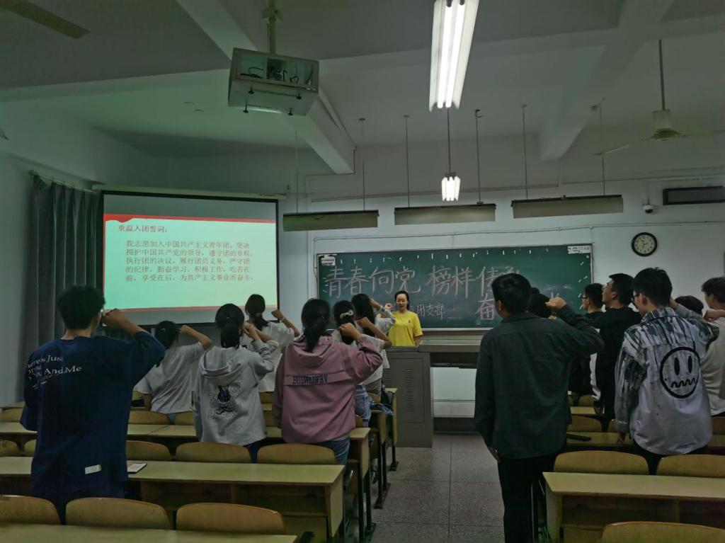 专题学习会,选取了新民主主义革命时期进行学习。在团支书的带领下,支部成员一同唱团歌,重温入团誓词。同学们在斗志昂扬的誓词声中寻初心,悟使命。