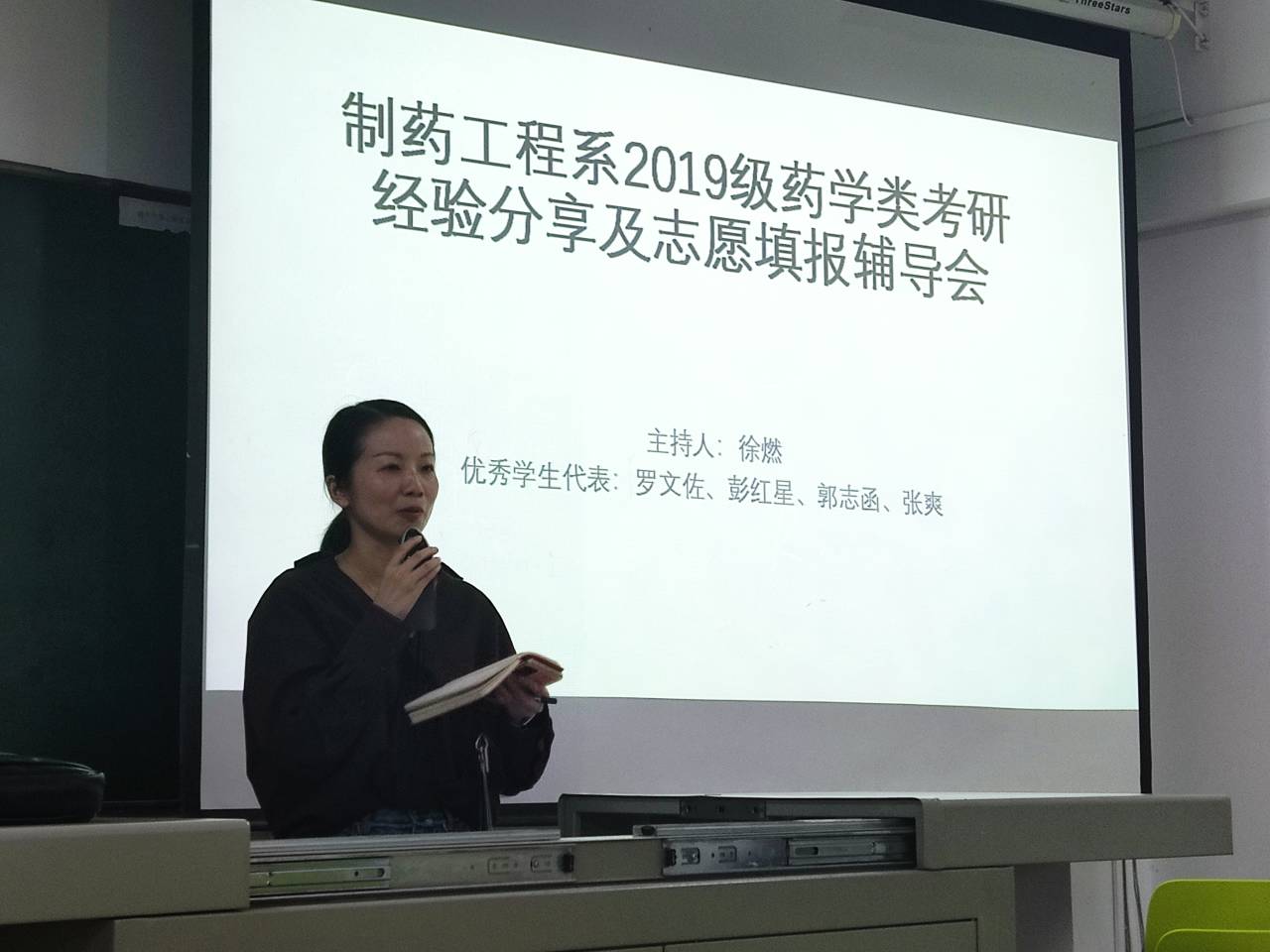 5月12日,制药工程系召开了2019级考研经验交流会及志愿填报辅导会。会议由制药工程系主任徐燃主持,19级辅导员兰奎和药学类专业学生参加,特别邀请了张爽、罗文佐、郭智函、彭红星四位考研成功的优秀学生代表进行经验分享,系主任徐燃老师介绍了制药系往年升学率,着重对18级药学类每个班级的考研数据进行了对比,分析考生成功和失利的原因,跟同学们强调要多和老师沟通,同时结合自身情况选择报考院校,不要盲目追求名校。