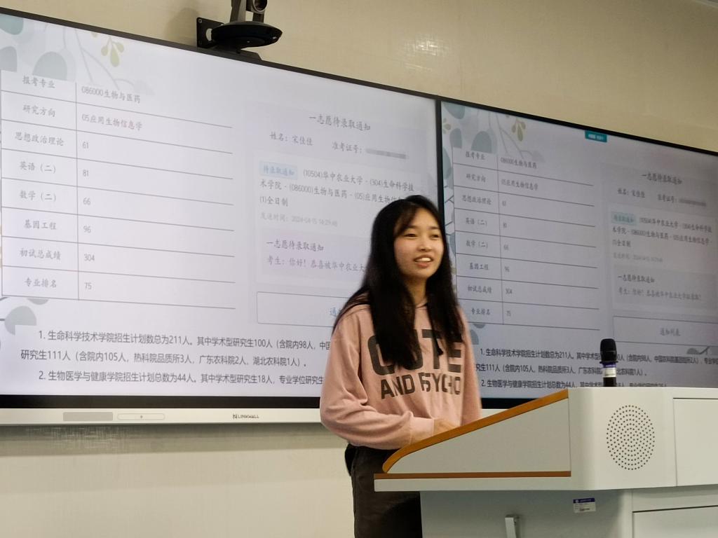姚圣黎老师详细解读了考研政策和报名流程,分享了成功的考研经验,并提供了实用的备考策略。宋佳佳、李梦托等优秀学生代表结合自身考研经验,分别围绕院校和专业选择、备考学习计划、备考心态和复试准备等方面进行了分享。他们表示,考研路上,最重要的就是坚持考研初心,要相信自己有坚持到底的能力和击破困难的勇气,同时也要学会及时进行自我反思和总结,不断调整自己的学习方法,找到真正适合自己的考研之路。
