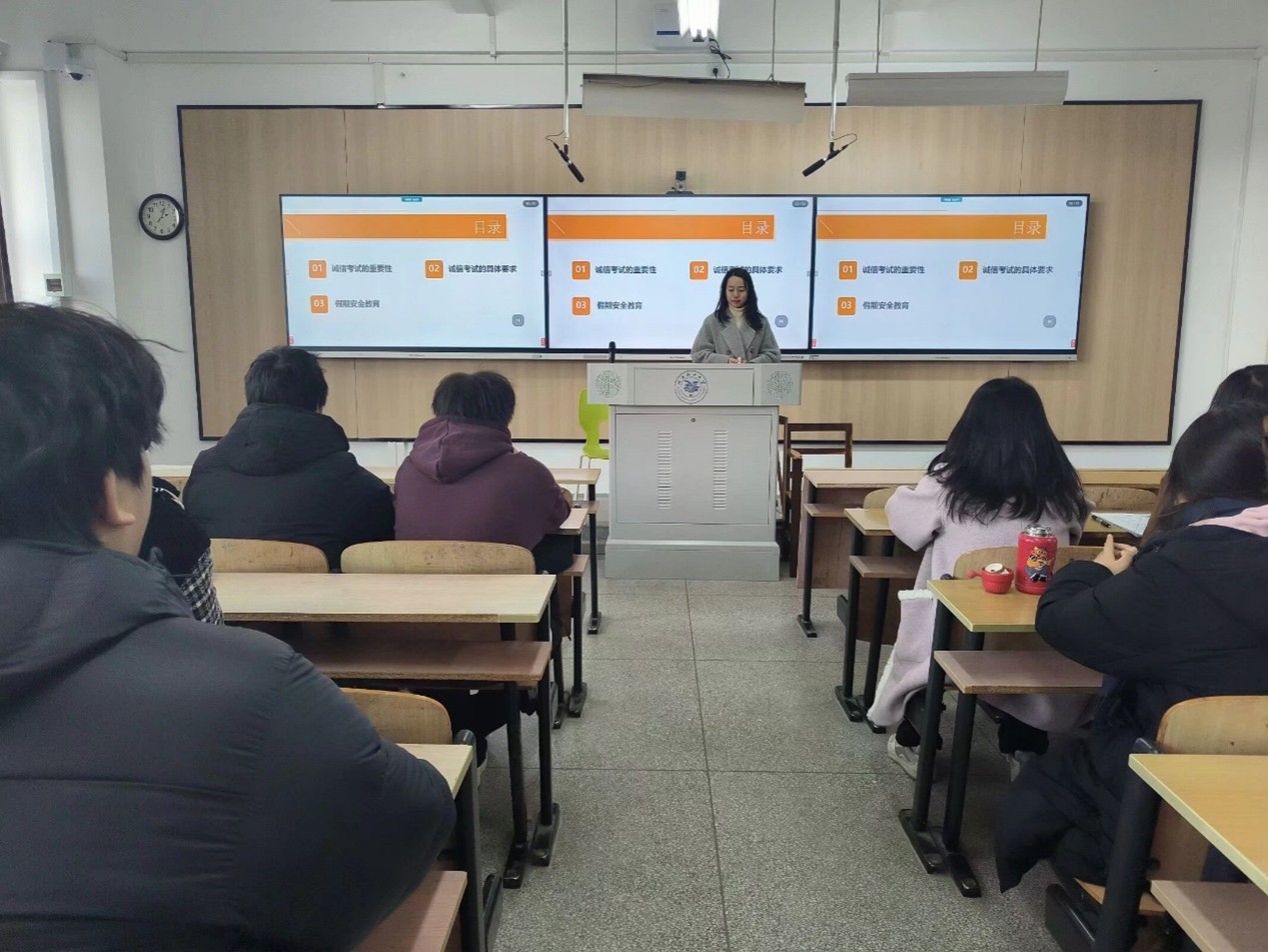 班会首先强调了诚信考试的重要性,班主任们指出,诚信是学术研究的基石,也是个人品德的体现。在即将到来的期末考试中,每位学生都应秉持诚实守信的原则,拒绝任何形式的作弊行为。班主任们通过分享历年优秀毕业生的诚信事迹,激励学生们以实际行动践行诚信精神,共同营造公平、公正、积极向上的考试氛围。同时,班主任们也提醒学生们,考试不仅是对知识掌握程度的检验,更是自我挑战和成长的机会,鼓励大家以平和的心态面对考试,全力以赴,展现真实水平。各班班主任还带领同学们学习了《武汉轻工大学学生违纪处分办法》。