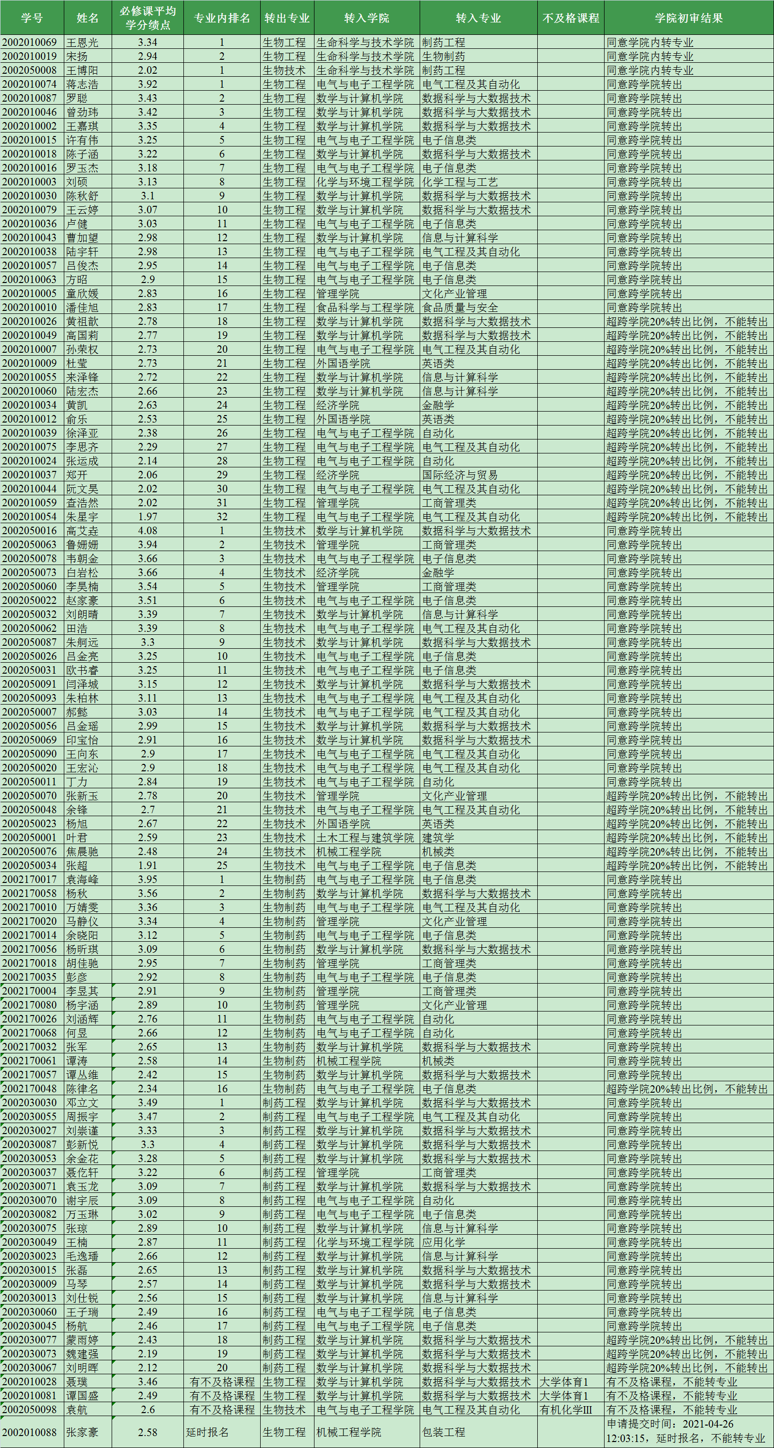 为确保对2020级本科生转专业工作公开、公平、公正、择优完成,现将转专业学院审核结果公示如下。