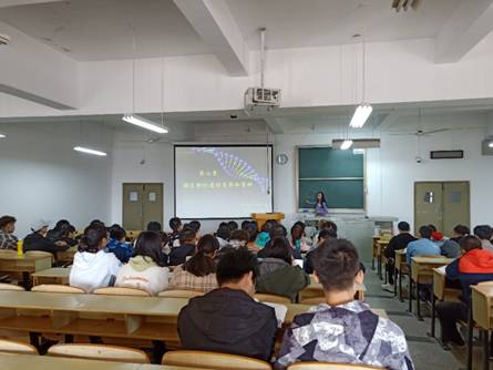 此次观摩课由廖卫芳老师主讲,廖卫芳老师是我系微生物学教师。课堂上,廖老师主要讲解了微生物的遗传和变异,重点介绍了遗传变异的物质基础及遗传物质在细胞内存在的部位和方式。课程内容丰富,讲授思路条理清晰,语言流畅,PPT制作精美,图片丰富。教学过程中适时的抛出问题,引导学生进行思考和讨论,充分调动了学生的积极性,有利于学生对课程内容的消化吸收,课堂效果良好。