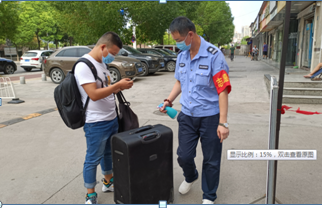 3号早上,学院的辅导员老师们早早地来到公寓,做好准备工作,迎接第一批返校的同学们。同学们佩戴口罩,在公寓门口有序不紊地接受返校检查校验,测量体温,工作人员同时对同学们随身携带的物品进行消毒,学院老师查验同学们的返校码并发放爱心物资。
