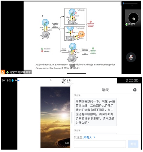 2020年5月29日晚7点,南京医科大学周宝宁教授来到《生物制药设备与分离纯化》创新课堂,借助腾讯会议平台与2017级生物制药专业的同学们分享了免疫技术在癌症治疗中的应用。