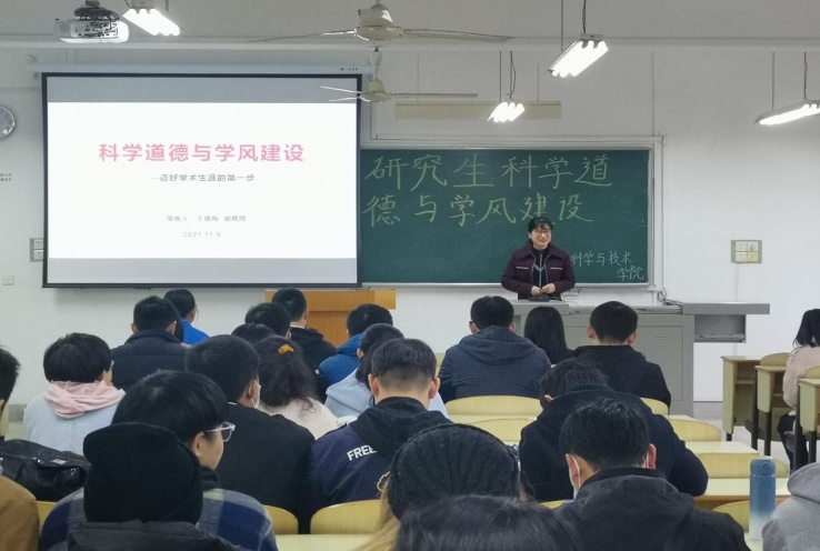 王丽梅副教授以“迈好学术生涯的第一步”为主题,首先就什么是科学道德与学风问题进行讲解,列举了发生在国内外教育界、科技界的一些典型的学术腐败及学术失范事件,强调了我国加强科学道德和学风建设的重要性和必要性。随后详细讲解“学术不端十大行为”,并向同学们列举了近年来学术中出现的失信案例,如“湖南大学研究生论文全文抄袭”事件、“著名海归学者被曝论文造假”事件等,提出研究生科研工作中坚决不能出现的学术不端行为。讲座进一步强调了研究生科研活动中应当自觉遵守的十大学术规范:实验或论文数据需真实、不造假、不篡改;学术论文不抄袭、不剽窃、不一稿多投以及学术成果需正确署名,尊重事实等。讲座对帮助研究生自觉遵守科学道德、学术规范起到很好的警示和教育作用。