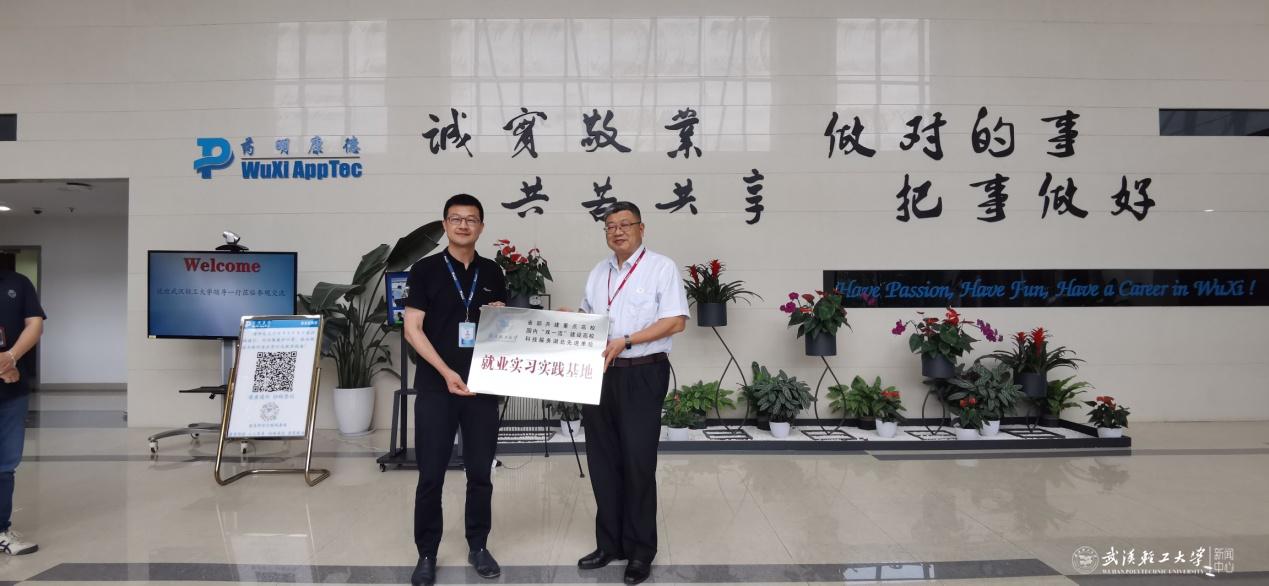 为深入落实就业工作“一把手”工程,扎实做好“访企拓岗促就业”专项行动,助力毕业生高质量就业,6月1日下午,校党委书记王立兵带队前往武汉药明康德新药开发有限公司(以下简称为“武汉药明康德”)、普健生物(武汉)科技有限公司(以下简称为“普健生物”)考察调研、看望校友,并出席“就业实习实践基地”挂牌仪式。武汉药明康德运营负责人刘庆生、普健生物董事长秦伏波等分别接待了王立兵一行。