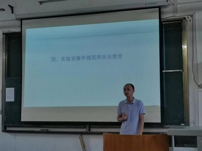 最后,实验中心的孙璐宏老师和余爽老师带领同学们学习了实验室安全行为规范。孙璐宏老师强调在实验中要规范实验操作,应用合理的实验方法以及营造良好的实验环境,降低实验中的安全隐患,避免事故的发生。余爽老师就危化品的使用和管理做出了详细的介绍。他提出实验中若需用到危化品,需提前登记备案;在实验室中要多人管理危化品,登记使用剂量和残余量,做好其管理工作;在使用危化品时自身一定做好防护工作,以免对身体造成伤害。