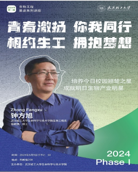 5月9日下午,taptap生物工程系组织了一场别开生面的专题讲座。生物工程系钟方旭副教授受邀为生物工程专业学生带来了一场主题为“青春激扬,你我同行,相约生工,拥抱梦想”的精彩讲座。此次讲座为生物工程专业学生点燃梦想之火,不仅让学生们对生物工程有了更深刻的理解,更为他们未来的学术和职业生涯指明了方向。