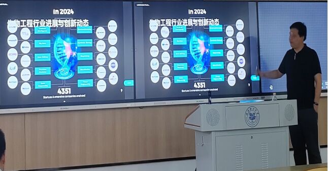 雷磊首先向同学们介绍了生物工程相关领域的行业发展现状,详细解析了生物工程在医药、食品、农业、环境保护等多个领域都展现出巨大的潜力和应用价值,反映出当今社会对生物工程专业人才的需求日益增长。