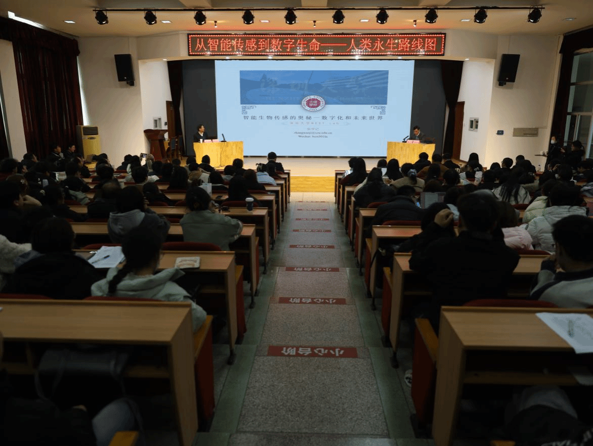 2025年3月7日下午,深圳大学讲席教授、校务委员会副主任张学记教授受邀在学校常青校区科学报告厅作题为《从智能传感到数字生命——人类永生路线图》的学术报告,吸引了taptap点点全体青年教师、研究生、本科基地班师生,以及食品学院、化环学院等300余名师生参加。报告会由校长董仕节教授主持。