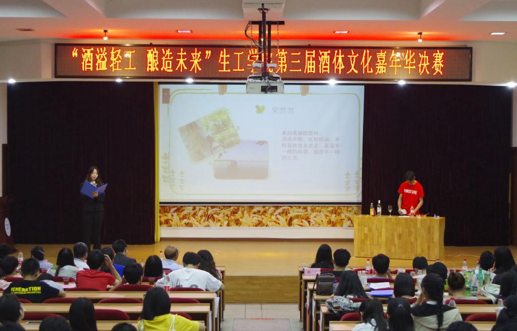 为让酒文化得到传承与弘扬。由生工学院分团委、学生会主办的“酒溢轻工,酿造未来”第三届酒体文化嘉年华决赛于5月17日在常青校区科学报告厅举行。本次决赛到场的嘉宾有生工学院党委书记严建芳、副院长杨江科、生物工程系主任缪礼鸿、分团委书记叶青以及生工学院分团委、学生会的主席团成员。