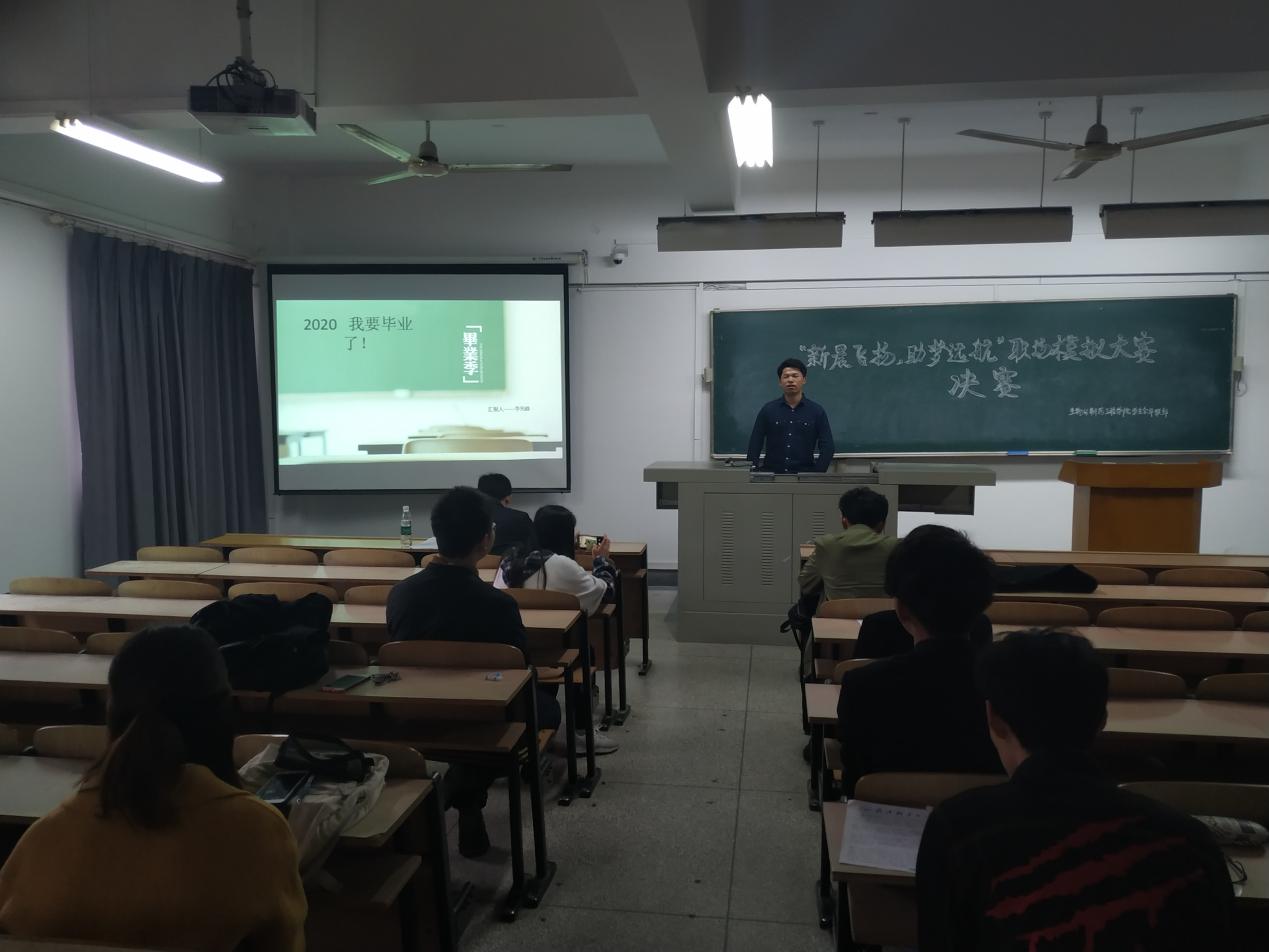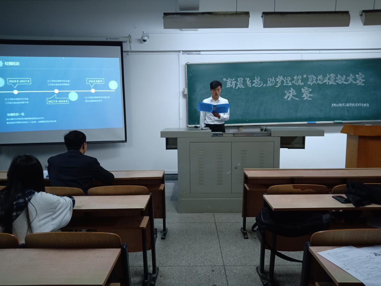 为了帮助即将走进职场的大三学子定位自己,解决大三学子的职场困惑,积攒更多的职场应用技巧,由武汉轻工大学生工学院、江苏新晨药业有限公司主办,生工学院学生会外联部协办的“新晨飞扬,助梦启航”职场模拟大赛决赛于2019年4月29日18:00在科教楼403顺利举行。莅临本次比赛的评委和嘉宾有新晨药业的周经理和生工学院学生会的成员。