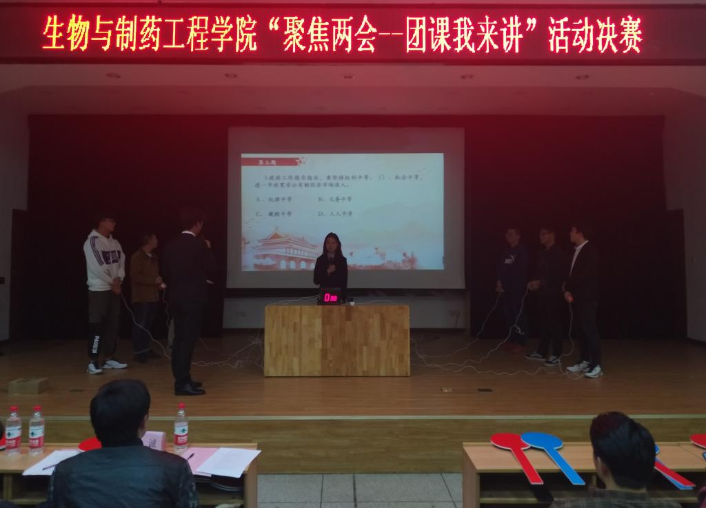 为了让广大青年团员了解国家热点时政,落实“三会两制一课”,充分发挥基层团组织的战斗堡垒作用,提高团员青年对基层团组织的认同感和归属感,生工学院分团委组织部于2019年3月31日晚6:30在科学报告厅成功举办"聚焦两会——团课我来讲"决赛。