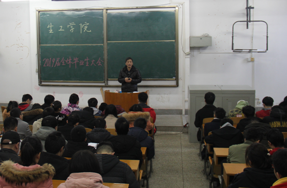 2019年2月28日下午14:30,生工学院在医护楼201举办了2019届全体毕业生大会。参与本次大会的有生工学院党委书记严建芳、副院长王宏勋、副书记李静、毕业班辅导员以及2019届全体毕业生。