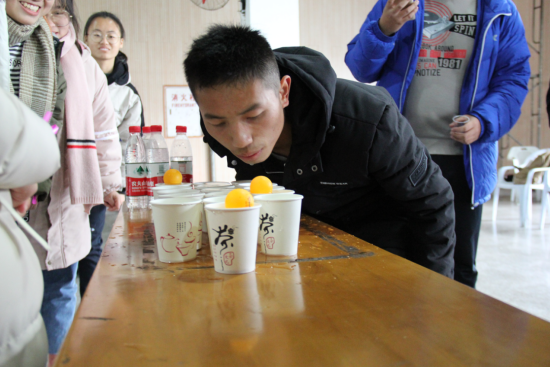 到场的分团委、学生会成员抽取一条丝带,以丝带颜色为标准进行分组,一共分了12组,当然主席团成员也积极参与游戏之中。活动从一个简单的暖场游戏开始,看似简单的游戏促进了成员们之间友谊。暖场游戏之后,各个小组开始自己的游戏之旅。在“校长吃热狗”、“砸排球”、“接力游戏”、“含水猜词”等游戏中,参与游戏的成员无不拼尽全力,为自己的小组做出一份贡献,同时在游戏中,小组成员也增强了合作意识,共同完成了所有游戏。交换礼物的环节中,参与人员两两随机配对,交换自己所准备的礼物,小小的礼物包含着无价的心意。“火炎焱燚”队最终获得了12个队伍中的第一名。