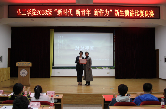 为了帮助大一新生对新时代有深入的了解和感悟, 正面引导青年思想,激励青年展现新作为,生工学院于2018年11月9日晚上六点半在常青科学报告厅成功举办了2018级“新时代 新青年 新作为”新生演讲比赛决赛。此次比赛的到场嘉宾有生工学院党委副书记李静、生工学院分团委书记叶青、生工学院2018级辅导员邹威老师、生工学院分团委学生会主席团成员。