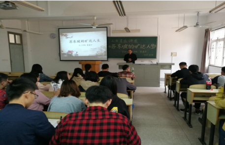 在讲述苏东坡的人格魅力时,讲到苏东坡总是以平和、愉快的心态去拥抱人生,希望同学们热爱生活,善于发现生活中的美与情趣。勉励学生像苏东坡那样拥有有趣的灵魂、豁达的心态;同学们在生活中遇到挫折时,注重调整良好的心态、以积极的态度面对。黎老师以广博的知识、富有哲理的语言,赢得了现场同学们的阵阵掌声。最后,黎老师回答了部分同学提出的问题,持续两个小时的讲座,在热烈的掌声中结束。
