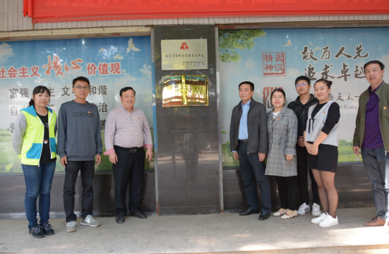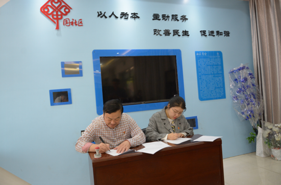 将军路街纪委书记李毕祥,将军路街团工委书记李柱石,梅花池社区书记胡玉华以及武汉轻工大学生物与制药工程学院分团委书记叶青老师一同揭牌,之后社区胡书记与生工学院叶老师签订志愿服务基地协议书。