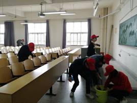 上午九点,全体志愿者在阳光雨露广场集合完毕,在明确了任务之后,便由各小组负责人带到指定教室。活动一开始,志愿者们便带着饱满的热情投入到活动中。他们不怕脏,不怕累,分工明确,配合默契,认真地清扫地面,擦拭桌面椅背污垢,清洁黑板尘埃。活动有条不紊地进行着,教室里穿梭着志愿者们忙碌的身影。