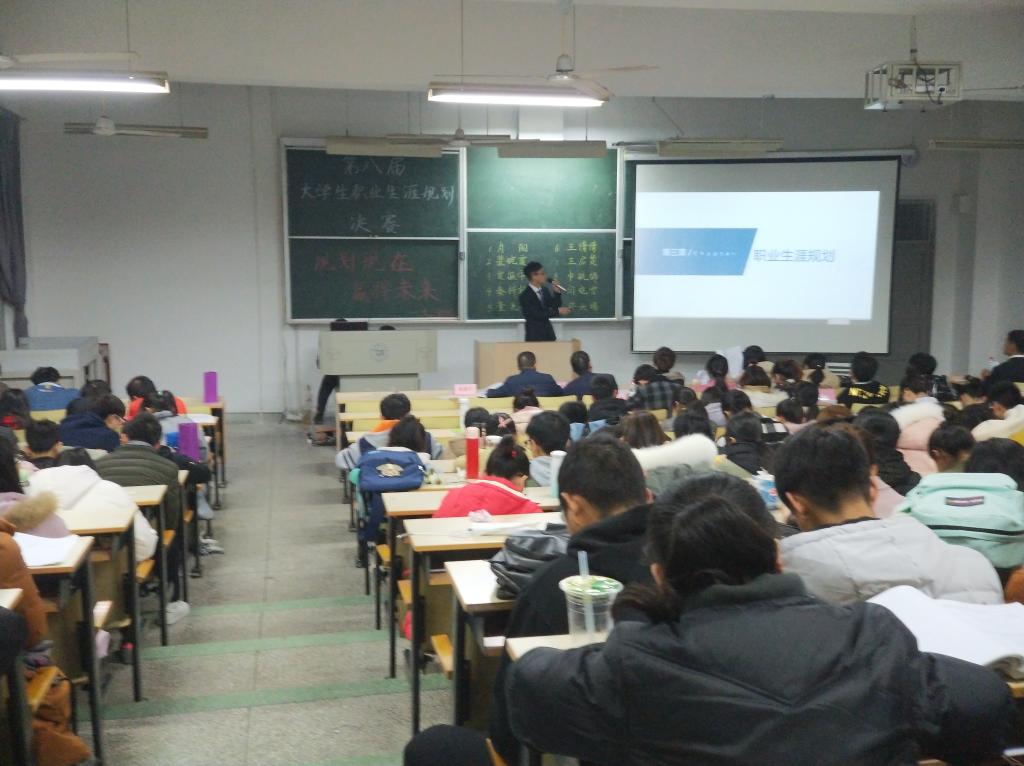 为了传播和普及职业规划理念,提高学生就业能力,2017年12月4日晚18:30,生工学院学生会外联部在2号楼308教室举行了“规划现在,赢得未来”第八届大学生职业生涯规划大赛决赛。莅临本次职规大赛的评委老师兼嘉宾有:生工学院党委书记严建芳书记、生工学院党委副书记李静书记、生工学院分团委书记叶青书记、16级普通班辅导员黎潇宇老师、14,16级中外班辅导员邹威老师、15,17级中外班辅导员高坤老师,另外还有生工学院2017—2018届主席团成员来到现场为选手助威。
