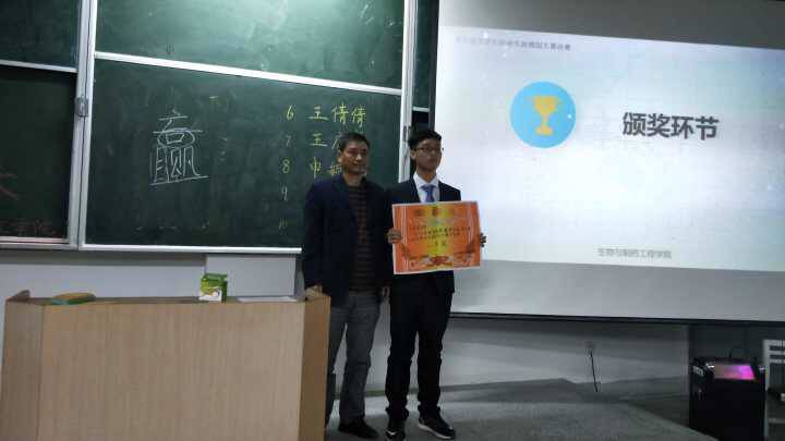 此次大赛的一等奖得主为生物科学类1601班的王启贤同学;生科1602邱天赐、生科1601贾振宇、闫晓雪荣获二等奖;生药1601翟婉霞、药剂1701肖阳、制药1701申毓锦、制药1702董先娜、生工1702王倩倩、秦梓轩荣获三等奖。