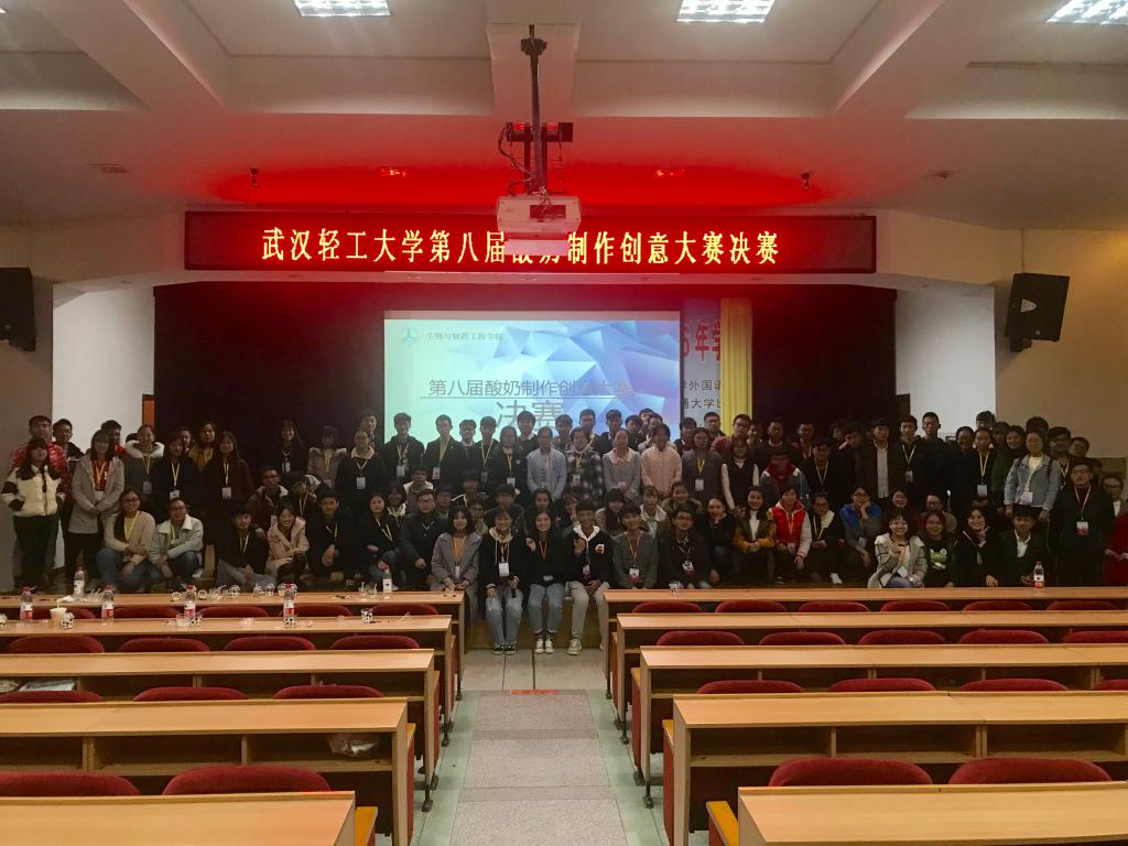 为了让同学们能更加了解各个小组酸奶制作的创意及意义所在,2017年11月24日晚18:30生物与制药工程学院在科学报告厅举行了武汉轻工大学第八届酸奶制作创意大赛的决赛,六只队伍以其美味的酸奶与别具一格的创意晋级到了决赛。本次决赛邀请了教务处副处长雷银生、学工处副处长李辉,校团委周雨露老师、生工学院院长刘志国、生工学院党委书记严建芳、生工学院的两位系主任闫达中和缪礼鸿,生工学院刘晓红老师作为此次决赛的嘉宾兼评委,生工学院各级辅导员、各学院分团委书记、校学生会、校社联、校科创、各学院学生会主席代表作为嘉宾出席本次酸奶决赛。