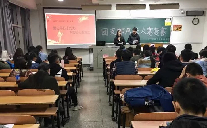 比赛开始,主持人为同学们介绍了到场嘉宾,并说明此次比赛的目的:为使各个团支部能够更好地肩负起十九大讲话中我们青年人的责任。经过初赛的激烈角逐最终14个团支部脱颖而出参加此次复赛,各团支部的形象大使按照顺序依次上台展示支部设计logo与创意展板、并从支部建设、团日活动和支部愿景等方面进行介绍。每个形象大使的宣讲都展现了青年人澎湃的热情。宣讲后,支部都播放了他们精心录制剪辑的十九大宣传片。每个团支部的宣传片都围绕着本次大赛的主题“励志笃行十九大,不忘初心跟党走”。各个团支部为了能使宣传片更完美地诠释本次大赛主题,走遍了武汉三镇所有红色景点。宣传片播放的过程中,讲台下时不时会响起一阵阵热烈的掌声。
