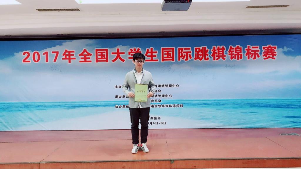 由国家体育总局棋牌运动管理中心、中国国际跳棋协会主办,河北省体育局棋牌运动管理中心、秦皇岛市体育总会承办的2017年全国大学生国际跳棋锦标赛于10月4日上午在北方海滨城市秦皇岛市开赛。来自京、沪、鄂等11个省市19所大学的大学生参加了比赛。来自武汉轻工大学生物与制药工程学院的生物制药1601班的曾芊让同学完胜清华联队,斩获个人组第四名和团体第二名好成绩。