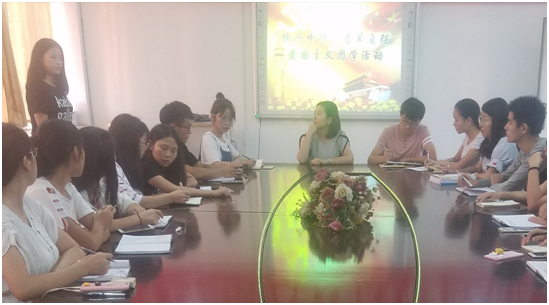 为加强同学们的爱国主义情怀,时刻谨记“振兴中华,吾辈自强”的责任感和意识感,2017年9月7日晚18:00,武汉轻工大学生物与制药工程学院分团委组织部在医护楼506举行了爱国教育培训会,学院分团委书记周雨露老师、分团委副书记赵金标、分团委学生会秘书长王丽珠、各支团部团支书及组织部部长出席此次爱国教育培训会。