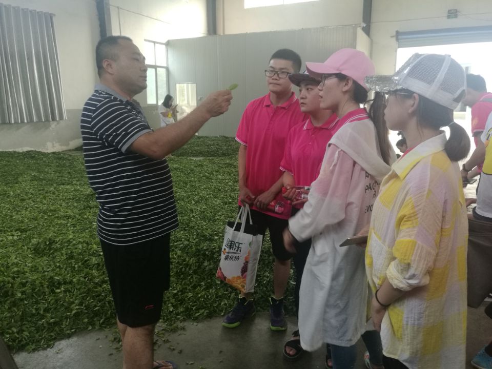 在唐总经理的带领下,制茶师傅在现场为大家讲解了茶叶去青、烘焙、碾揉等一系列的过程,并现场答疑解惑。双方共青团干共同参观了制茶中钝化鲜叶、去氧化酶活性、碾揉成形的去青过程,双方青年还一起交流探讨了茶叶文化,更就茶产业的助推方面提出了自己的见解,收获颇丰。