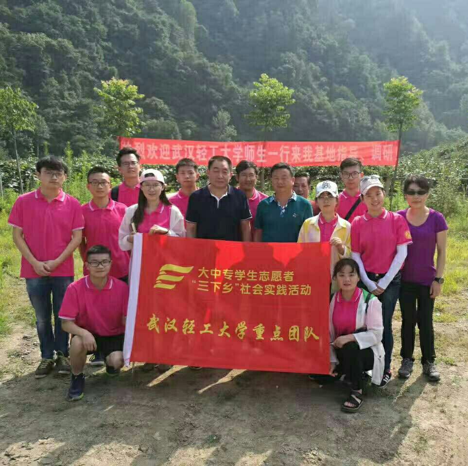 为发扬湖北省第十一次党代会精神,坚决打赢脱贫攻坚战,扎实推进精准扶贫、产业扶贫构筑脱贫长效机制。7月1日清晨,武汉轻工大学生物与制药工程学院2017年“三下乡”暑期社会实践活动“求索行动”团队在生工学院钟方旭博士、经管学院单初博士、生工学院分团委书记周雨露老师的带领下,一行12人奔赴世界猕猴桃发源地——宜昌雾渡河镇调研考察。