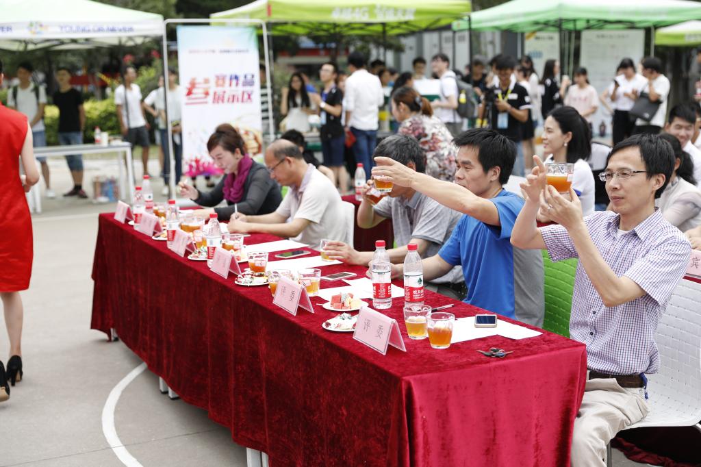 (通讯员 胡蝶 邓雨诗)6月1日,武汉轻工大学首届酒体文化嘉年华在常青公寓盛大开幕。生物与制药工程学院的同学们将啤酒酿造理论知识学以致用,现场“玩转”酒体文化嘉年华,白酒品评技能竞赛、自酿啤酒评比大赛、酒文化知识竞答、欢乐酒品品尝等活动,获得师生热烈反响。