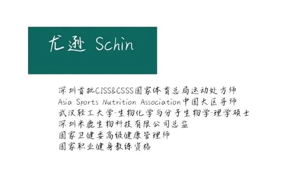 尤逊,深圳米鹿生物科技有限公司董事&总监、武汉轻工大学——生物化学与分子生物学理学硕士、深圳首批CISS&CSSS国家体育总局运动处方师、ASNA中国大区导师、国家卫健委高级健康管理师、国家职业健身教练资质。
