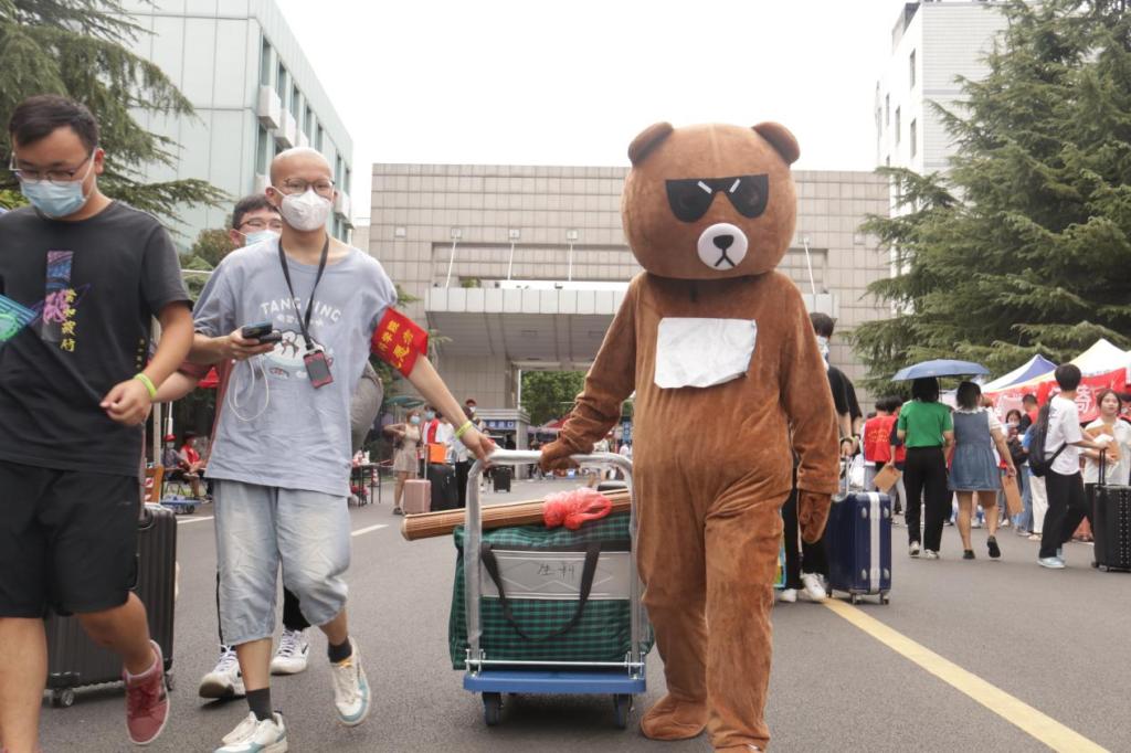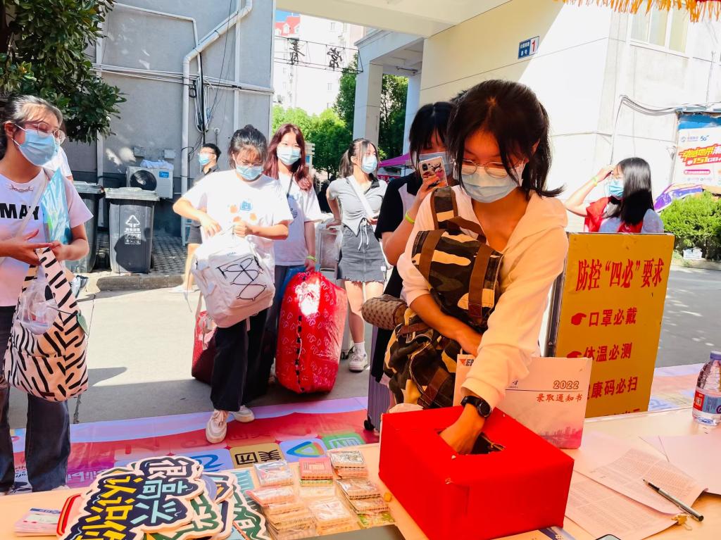 “同学你好,请问你是哪个专业的新生?”早上7点,武汉轻工大学大门和常青公寓门口,taptap点点的数十位学生志愿者已等候在现场,引导新生报到。他们手戴taptap点点的绿色专属订制手环,帮助新生查验健康码、搬运行李、报到注册、发放新生袋等,为本学院“萌新”保驾护航。