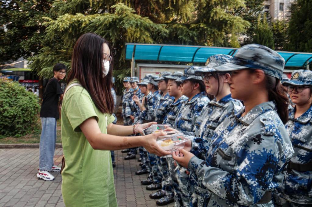 9月11日,正值中秋佳节之际,生科院2022级辅导员乔丹丹老师和王悦老师带领22级导学员订购月饼并分发给正在军训的新生,慰问他们在武汉轻工大学度过的第一个中秋节。