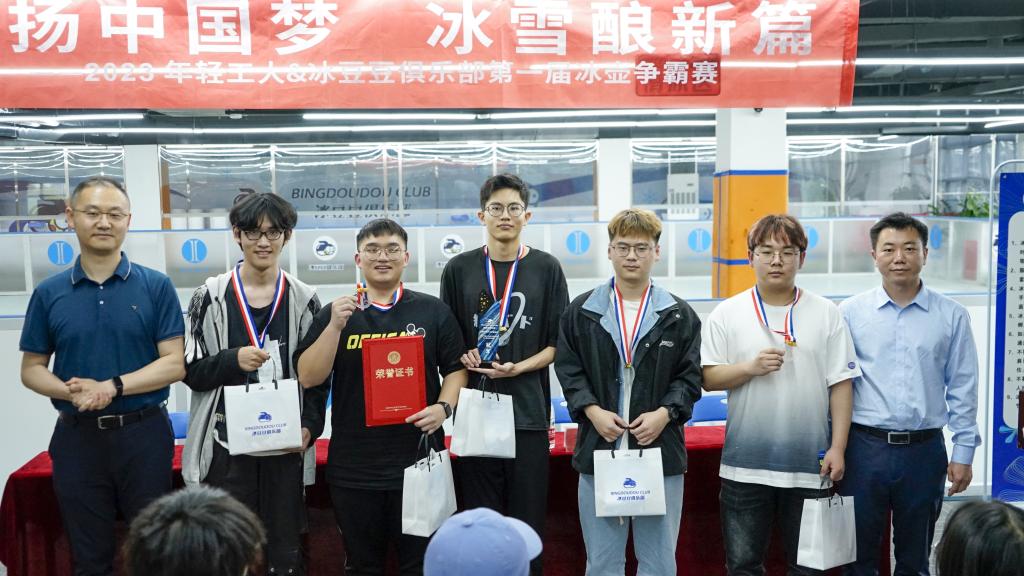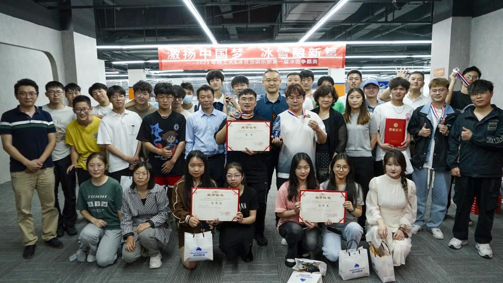5月5日下午5点,为期近2个月的“激扬中国梦,冰雪酿新篇”2023年武汉轻工大学冰壶争霸赛在冰豆豆俱乐部冰壶馆落下帷幕。省体育局竞体处处长马利聪、校团委副书记李鑫书记、武汉冰雪科技有限公司冰豆豆俱乐部董事长刘珍以及各参赛队伍出席了本次冰壶比赛闭幕式。