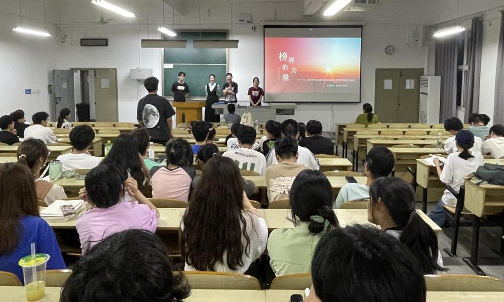 才思敏捷,品学兼优;科研竞赛,积极参与;工作踏实,大胆创新;思想政治,踔厉奋发这些词是盛轩学姐的成长的标签。她告诉我们要成为自己的“时间管理大师”,自律让你的学习更有规划和目的性;讲到成功的关键词----选择与努力,她说:“人生就是在选择和努力中‘螺旋上升’的,努力决定的是你的下限,选择决定的是你的上限。”机遇与挑战并存、道阻且长;不忘初心、砥砺前行这些话是高艾垚学姐告诉我们成长的秘籍。在校期间,生活工作、文体实践她都能平衡发展,让学习之余的时光也能多姿多彩。“放弃不难,但坚持一定很酷!”“你身体里的每一个原子,或许都来自宇宙很远的地方,世界那么大,你总得去看看。”杨春屹学长幽默风趣的故事,告诉了广大学子们:相信自己,坚持就会有收获。另外,杨紫微学姐向我们展示了她获得的学校荣誉和荣誉证书, 并向同学们分享了自己的未来方向和生涯规划----“迷茫不是颓废的借口,努力就会有糖吃。”最后,罗霄书记向以上优秀的学生代表表示称赞并号召同学们向榜样学习,不断成长进步。他指出,轻工大学子做事要有专注力,发现自己的闪光点,在轻工大学习期间要为人生树立正确的三观,端正思想,踏实前行。